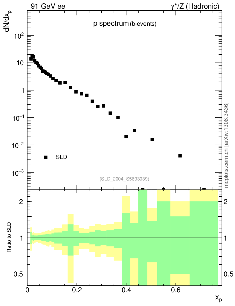 ee : γ*/Z (hadronic) : Identified Particles : p spectrum