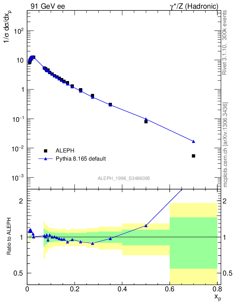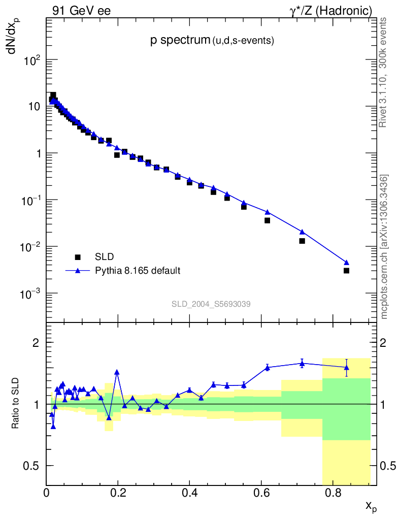 ee : γ*/Z (hadronic) : Identified Particles : p spectrum