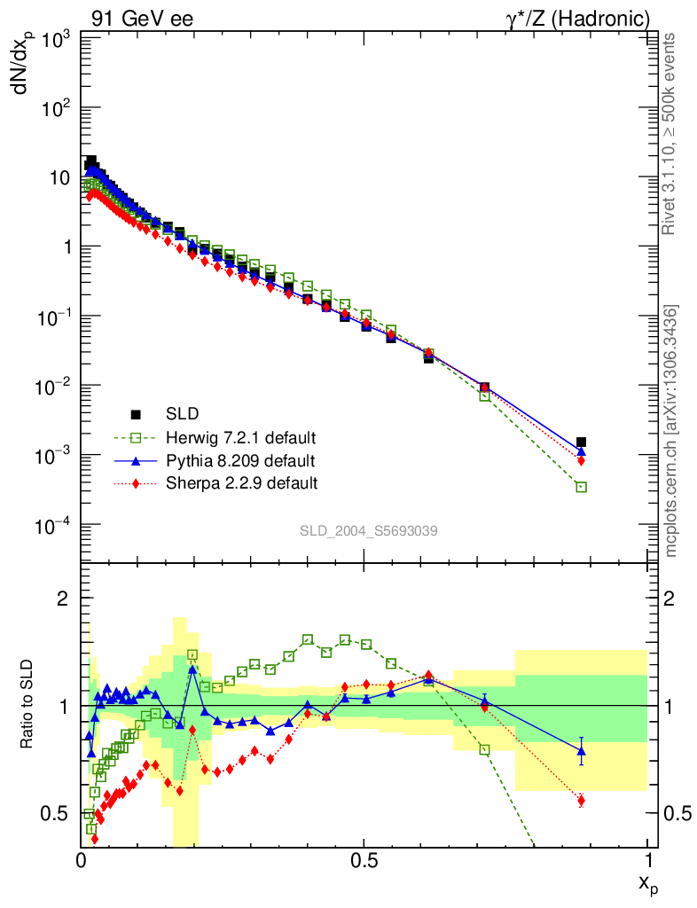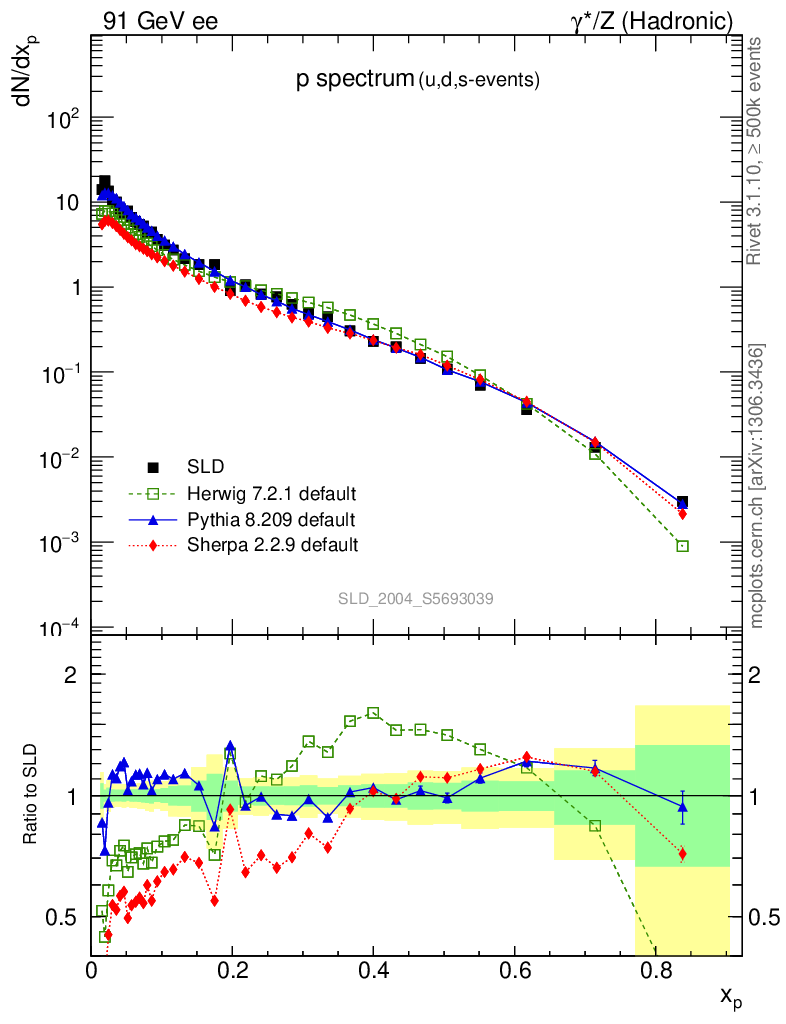 ee : γ*/Z (hadronic) : Identified Particles : p spectrum