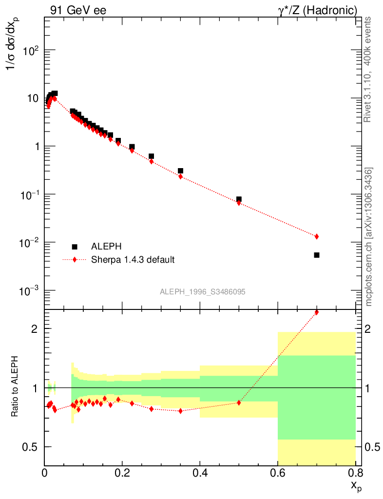ee : γ*/Z (hadronic) : Identified Particles : p spectrum