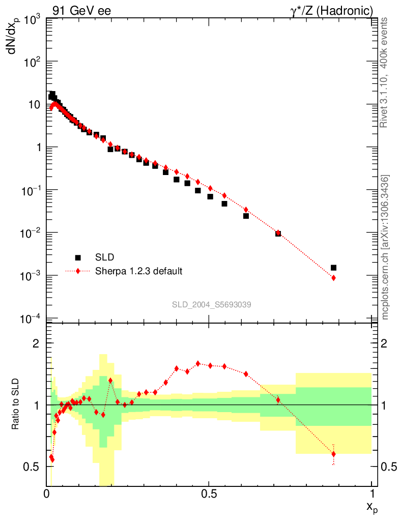 ee : γ*/Z (hadronic) : Identified Particles : p spectrum