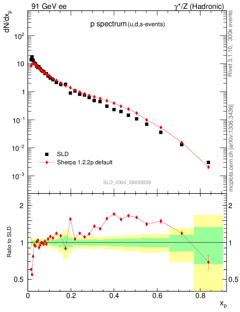 ee : γ*/Z (hadronic) : Identified Particles : p spectrum