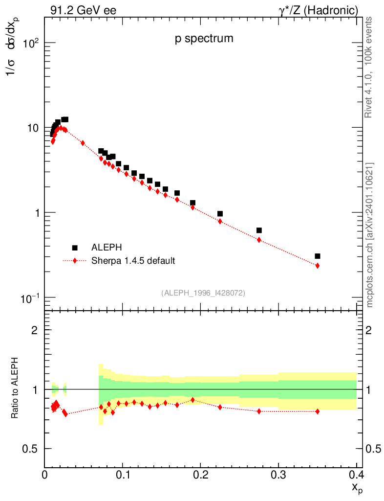 ee : γ*/Z (hadronic) : Identified Particles : p spectrum