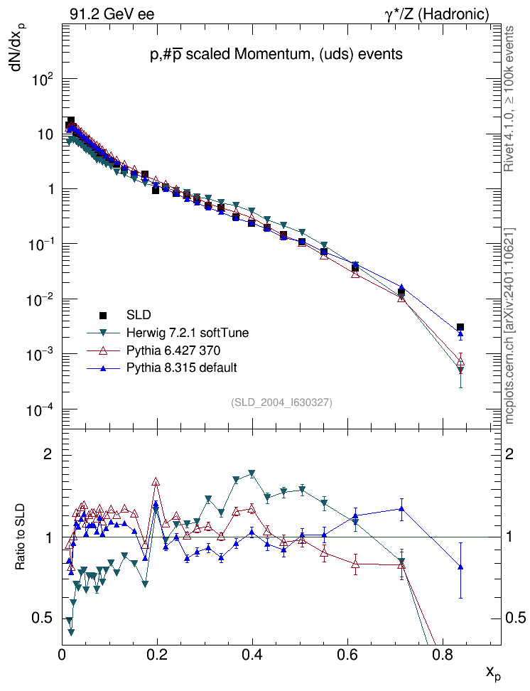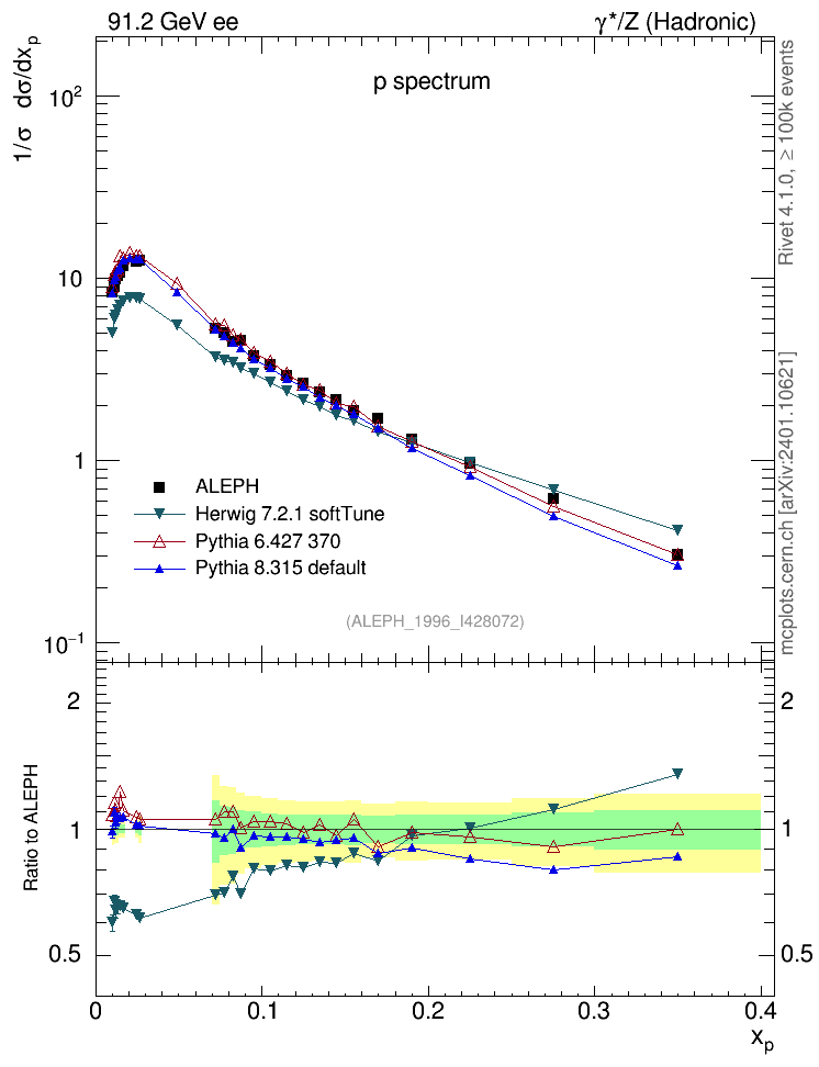 ee : γ*/Z (hadronic) : Identified Particles : p spectrum