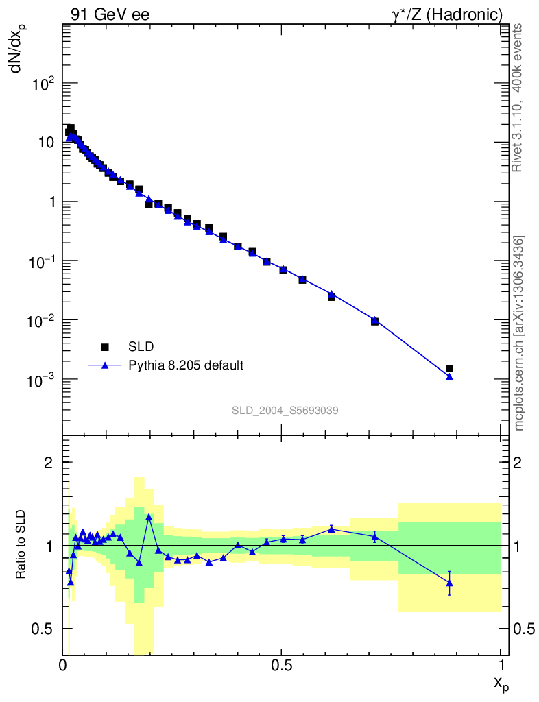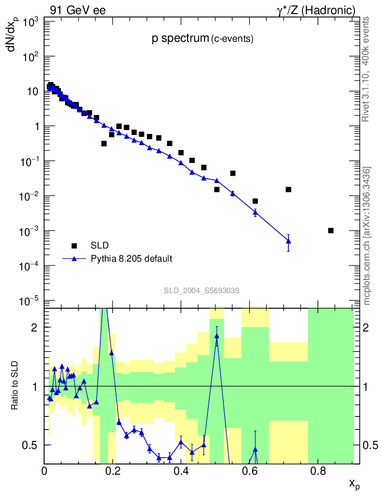 ee : γ*/Z (hadronic) : Identified Particles : p spectrum