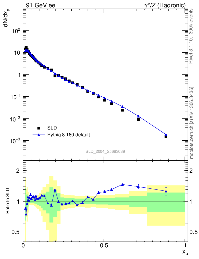 ee : γ*/Z (hadronic) : Identified Particles : p spectrum
