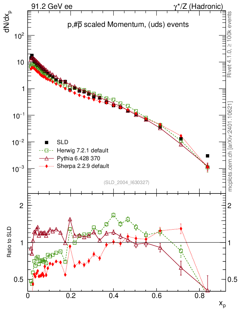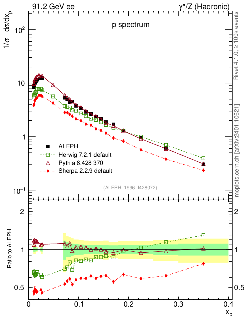 ee : γ*/Z (hadronic) : Identified Particles : p spectrum