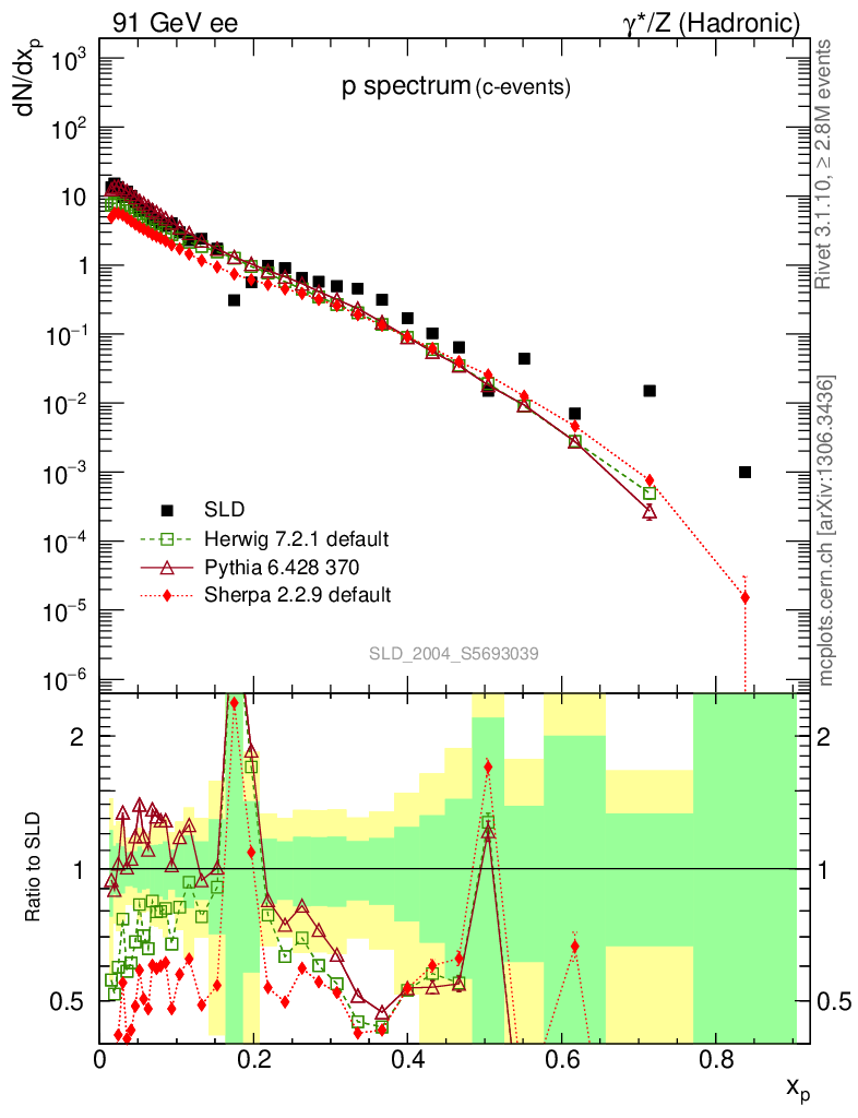 ee : γ*/Z (hadronic) : Identified Particles : p spectrum