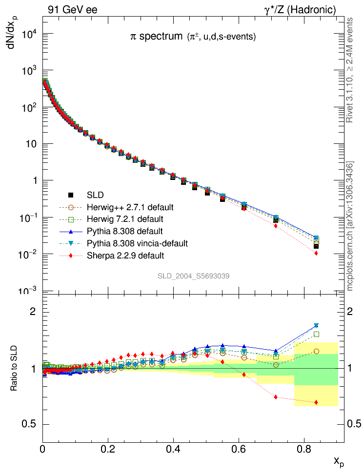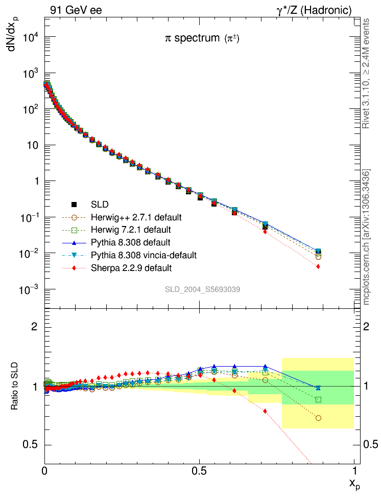 ee : γ*/Z (hadronic) : Identified Particles : π spectrum