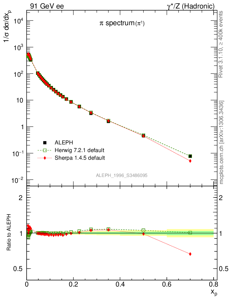 ee : γ*/Z (hadronic) : Identified Particles : π spectrum