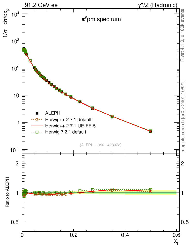 ee : γ*/Z (hadronic) : Identified Particles : π spectrum