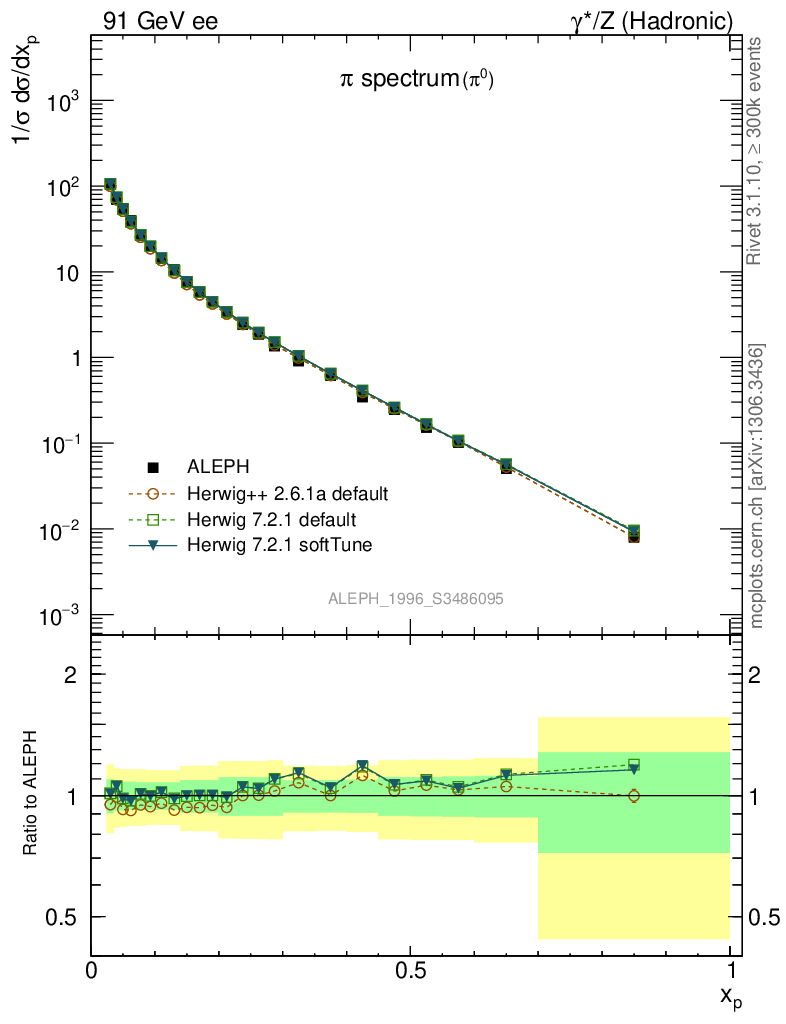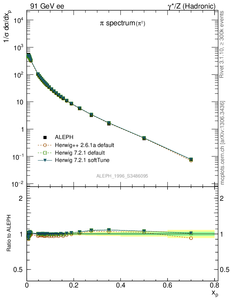 ee : γ*/Z (hadronic) : Identified Particles : π spectrum