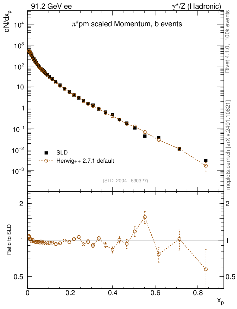 ee : γ*/Z (hadronic) : Identified Particles : π spectrum