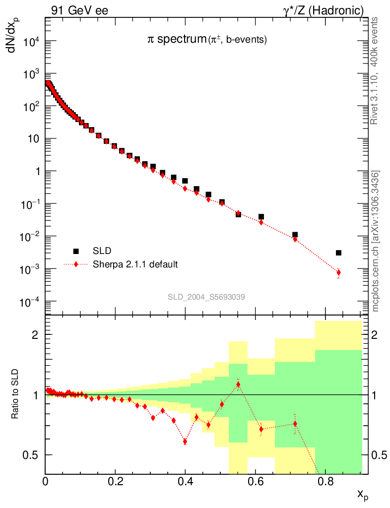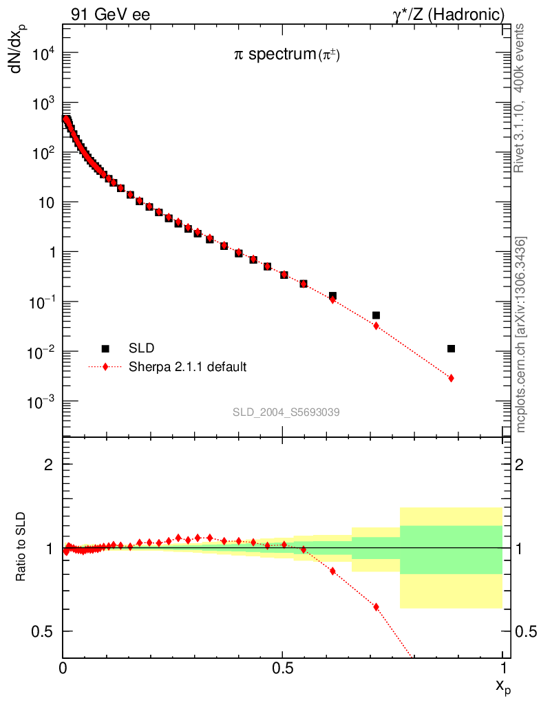ee : γ*/Z (hadronic) : Identified Particles : π spectrum
