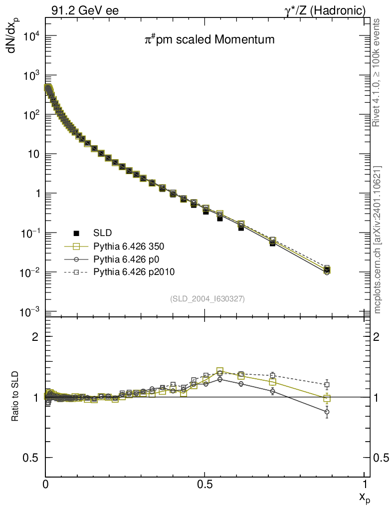 ee : γ*/Z (hadronic) : Identified Particles : π spectrum