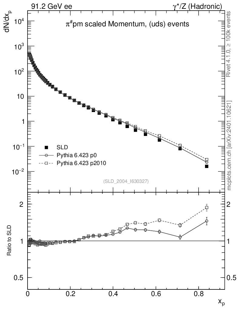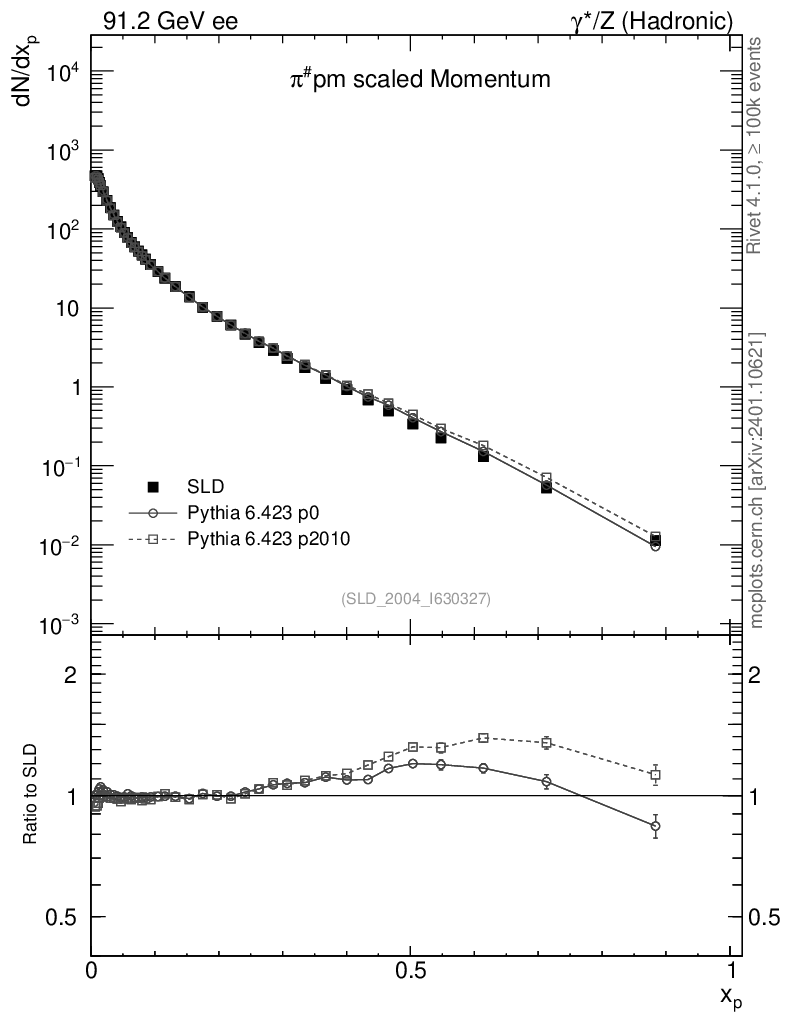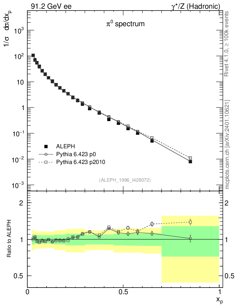 ee : γ*/Z (hadronic) : Identified Particles : π spectrum
