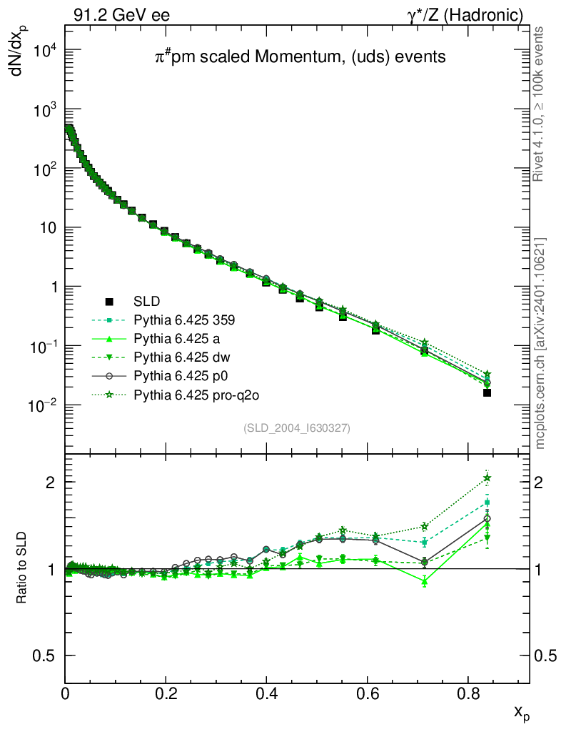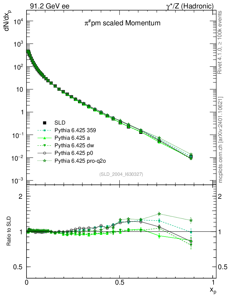 ee : γ*/Z (hadronic) : Identified Particles : π spectrum