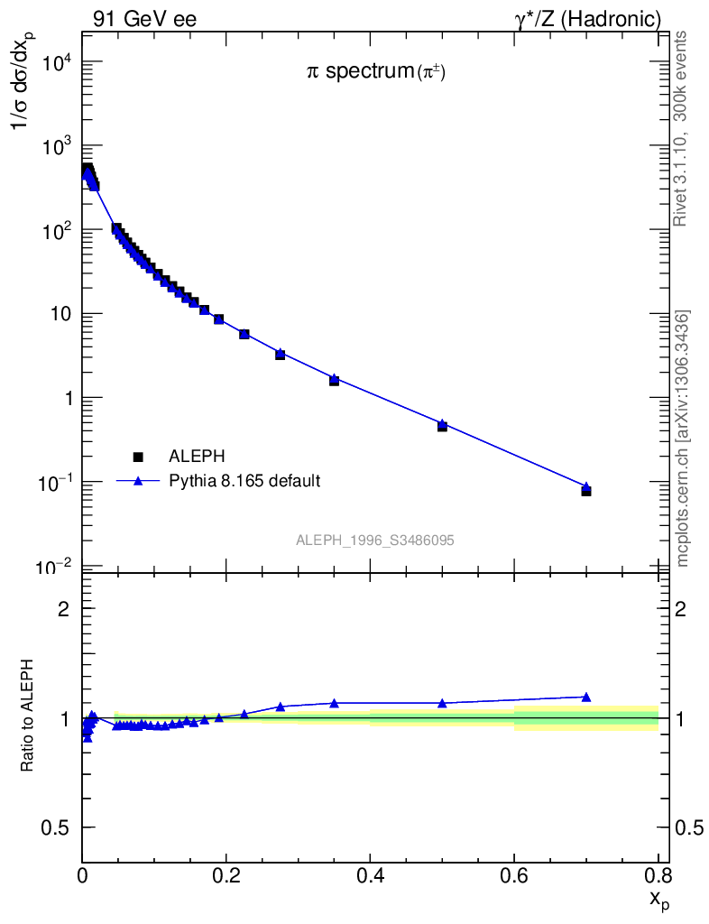 ee : γ*/Z (hadronic) : Identified Particles : π spectrum