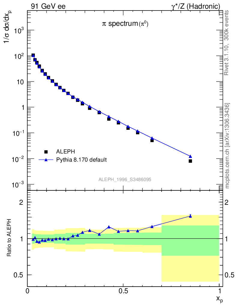 ee : γ*/Z (hadronic) : Identified Particles : π spectrum