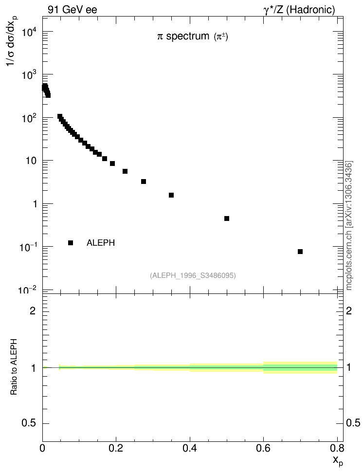 ee : γ*/Z (hadronic) : Identified Particles : π spectrum