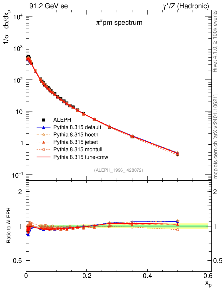 ee : γ*/Z (hadronic) : Identified Particles : π spectrum