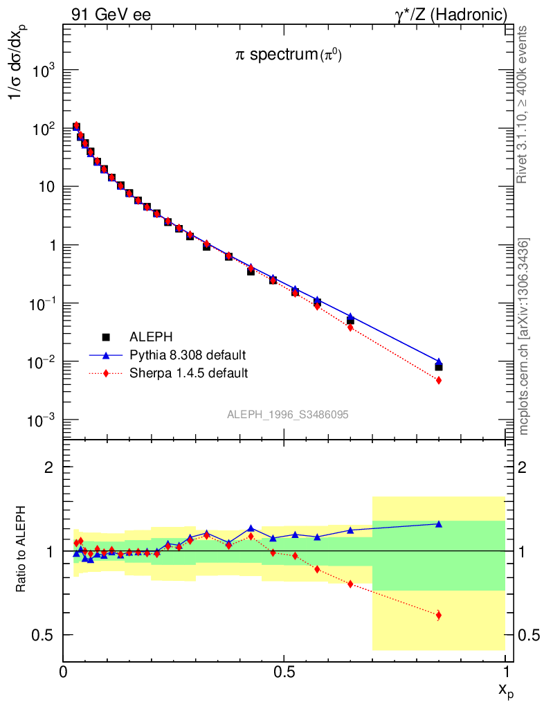 ee : γ*/Z (hadronic) : Identified Particles : π spectrum