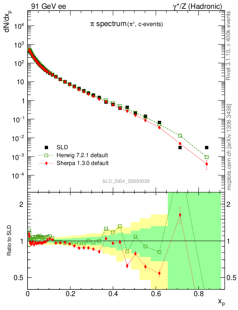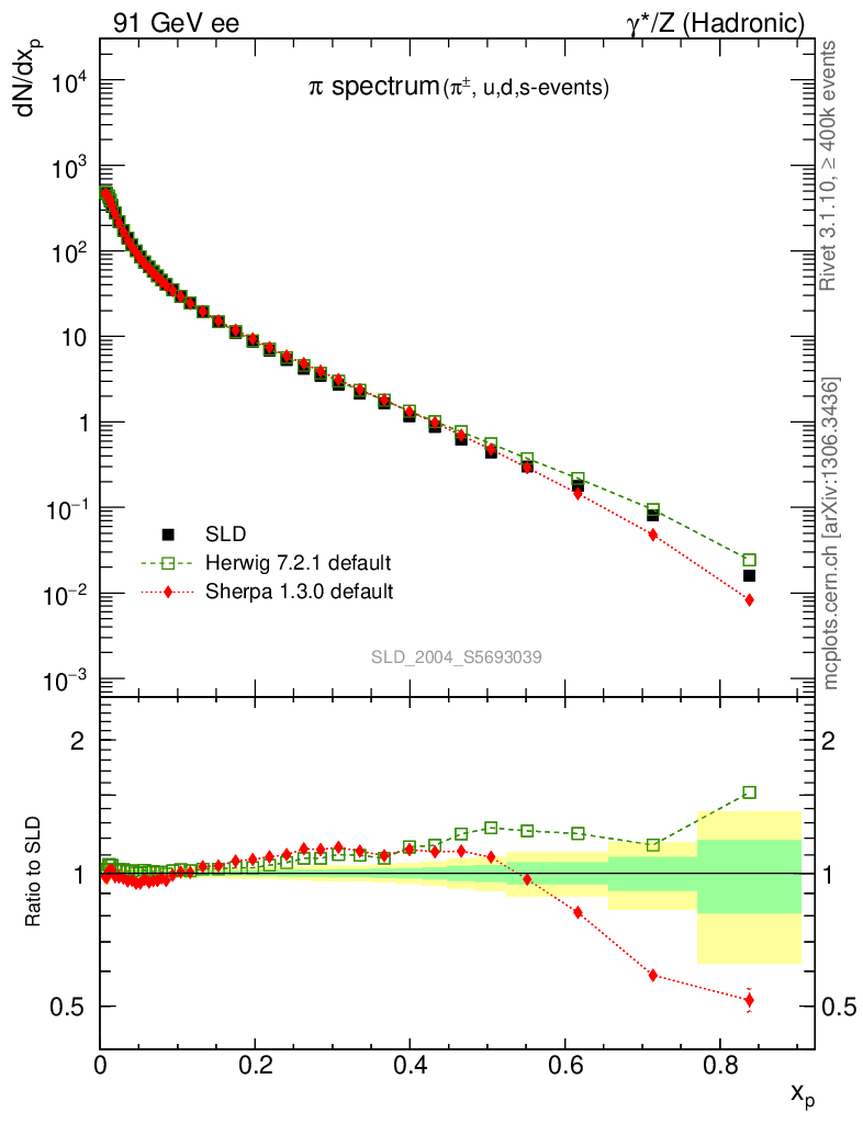 ee : γ*/Z (hadronic) : Identified Particles : π spectrum