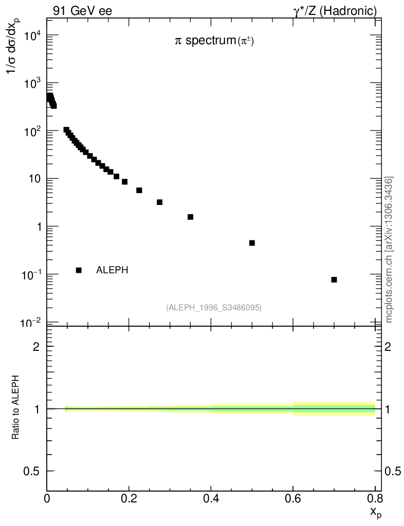 ee : γ*/Z (hadronic) : Identified Particles : π spectrum