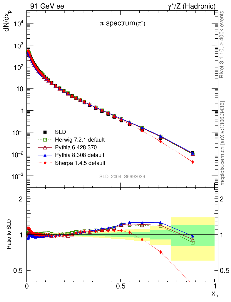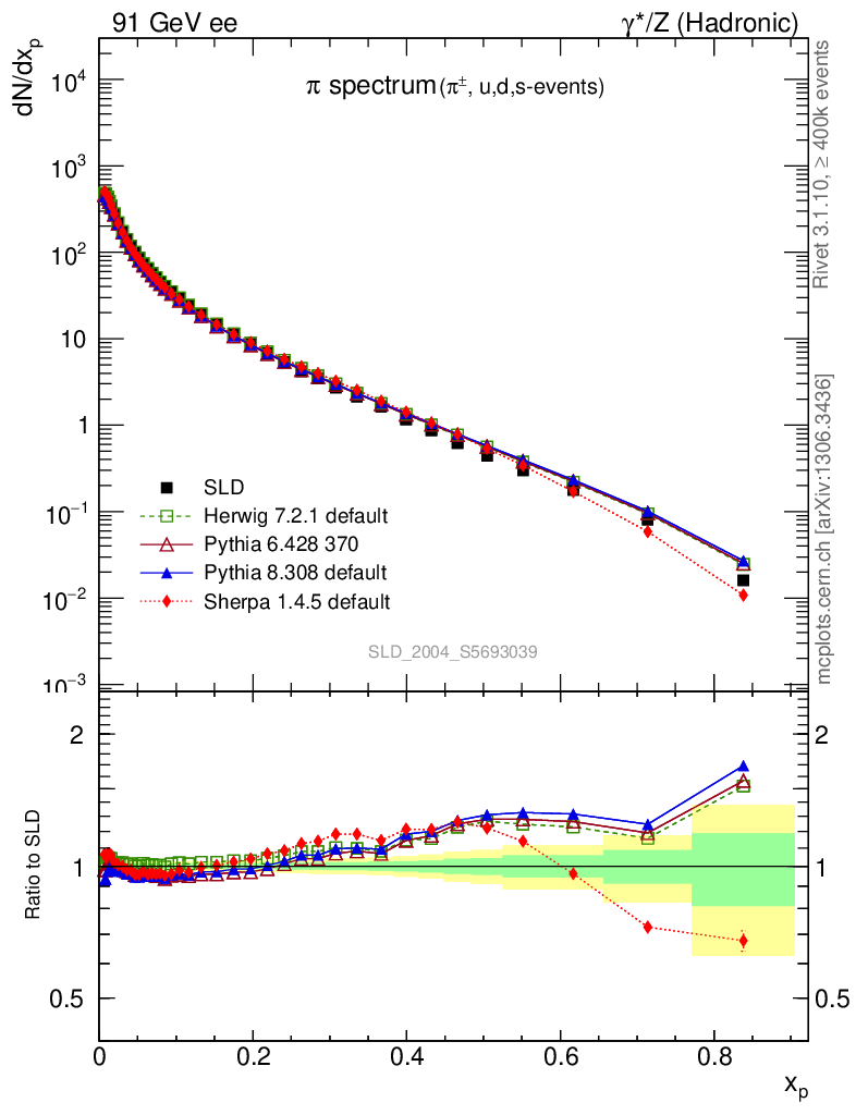 ee : γ*/Z (hadronic) : Identified Particles : π spectrum