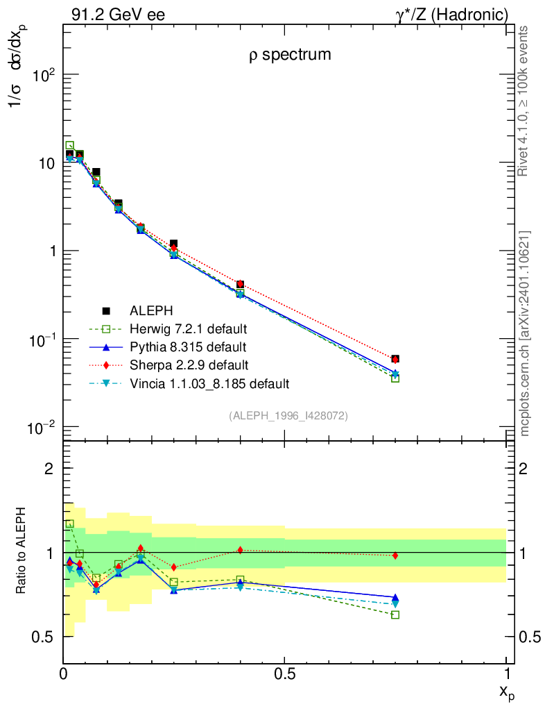 ee : γ*/Z (hadronic) : Identified Particles : ρ spectrum