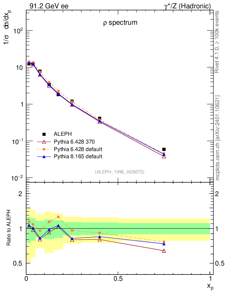 ee : γ*/Z (hadronic) : Identified Particles : ρ spectrum