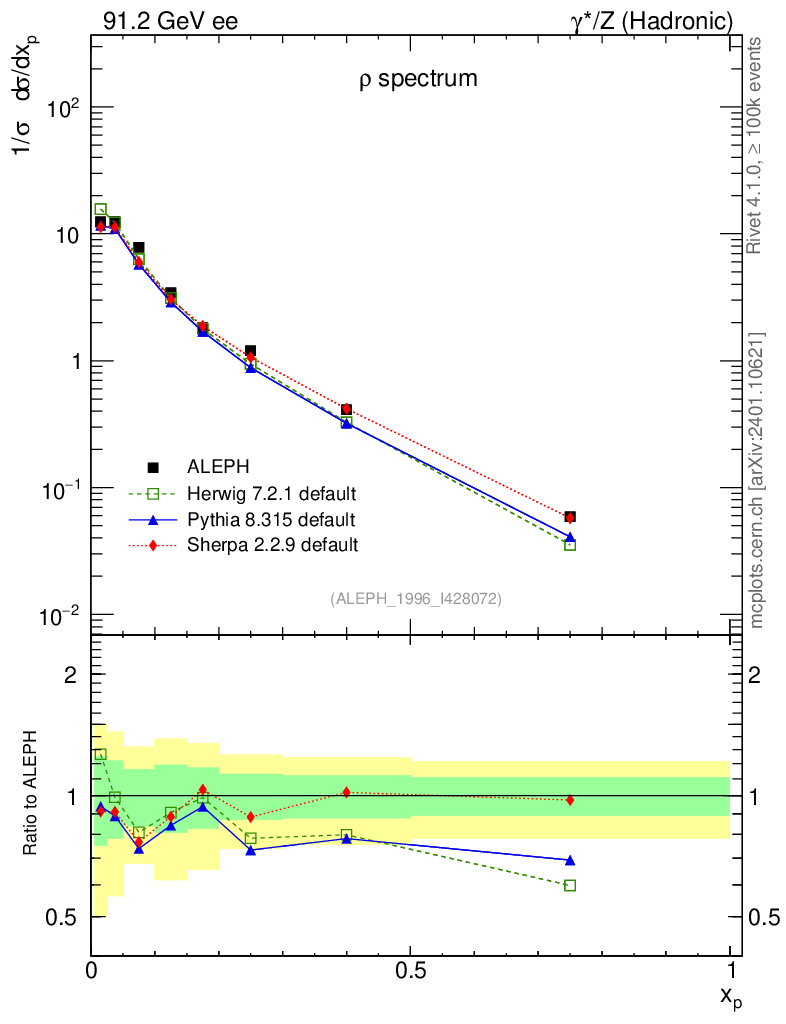 ee : γ*/Z (hadronic) : Identified Particles : ρ spectrum