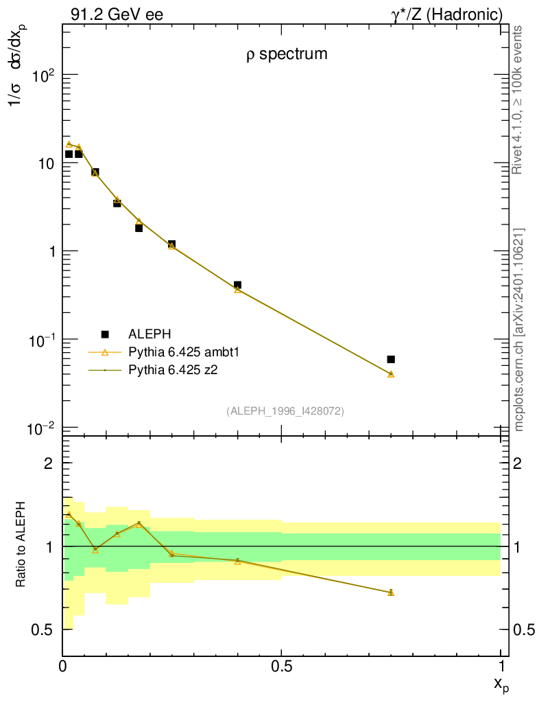 ee : γ*/Z (hadronic) : Identified Particles : ρ spectrum