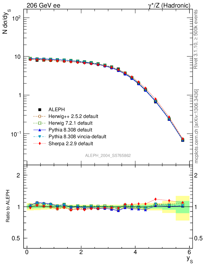 ee : γ*/Z (hadronic) : Charged Particles : Rapidity wrt Sphericity axis