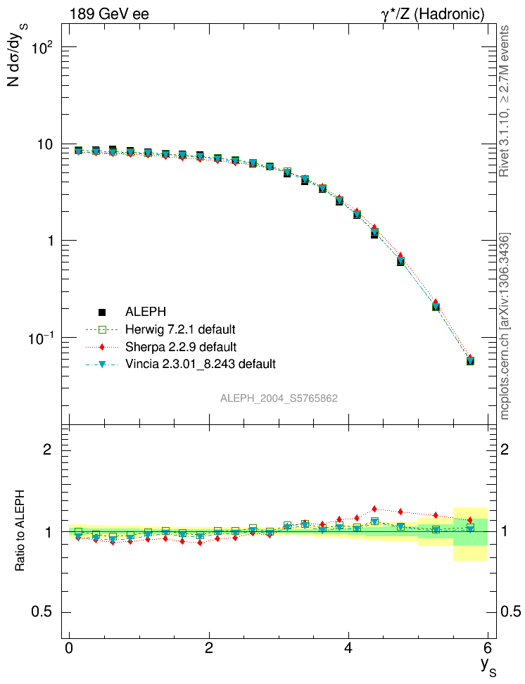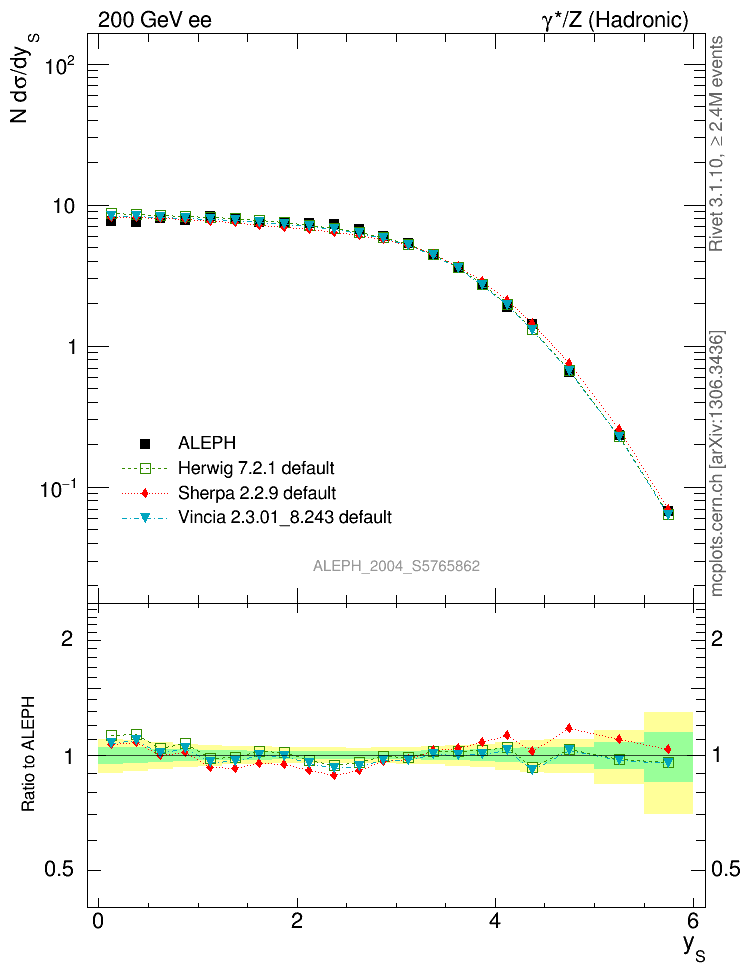 ee : γ*/Z (hadronic) : Charged Particles : Rapidity wrt Sphericity axis