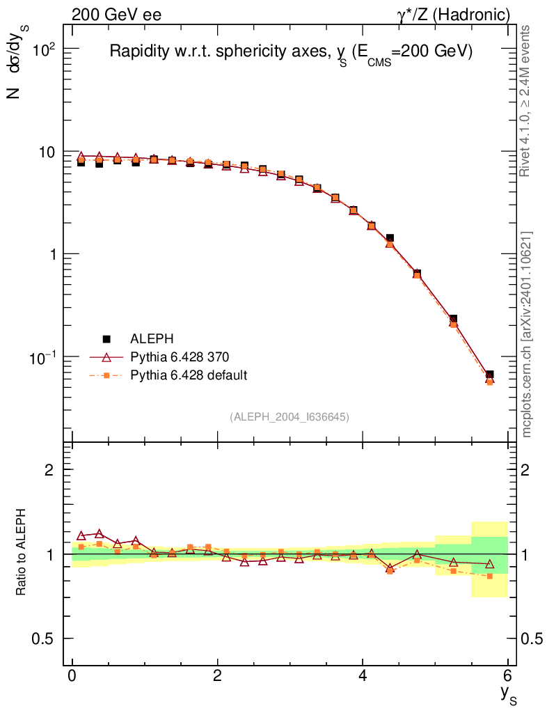 ee : γ*/Z (hadronic) : Charged Particles : Rapidity wrt Sphericity axis