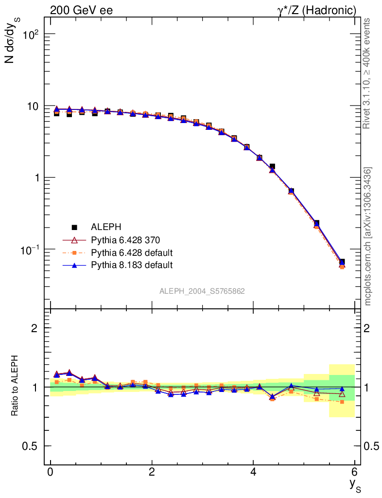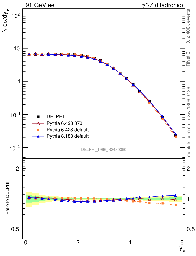 ee : γ*/Z (hadronic) : Charged Particles : Rapidity wrt Sphericity axis