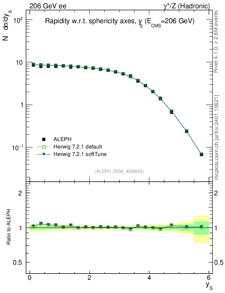 ee : γ*/Z (hadronic) : Charged Particles : Rapidity wrt Sphericity axis