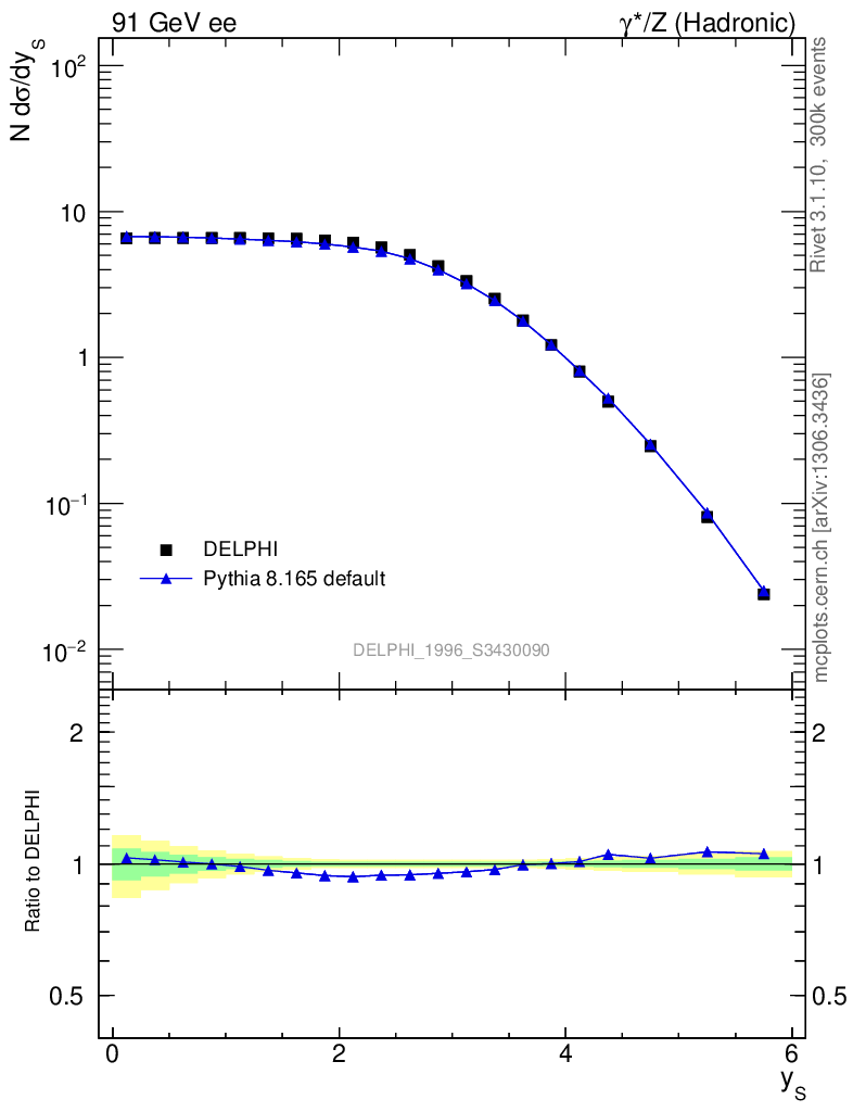 ee : γ*/Z (hadronic) : Charged Particles : Rapidity wrt Sphericity axis