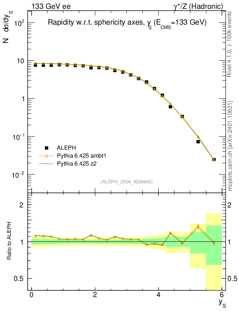 ee : γ*/Z (hadronic) : Charged Particles : Rapidity wrt Sphericity axis
