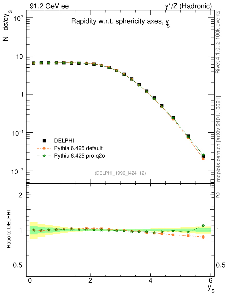 ee : γ*/Z (hadronic) : Charged Particles : Rapidity wrt Sphericity axis