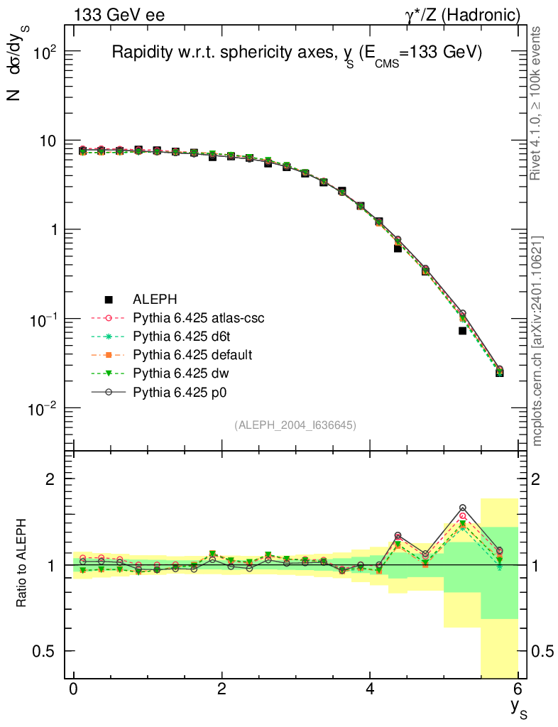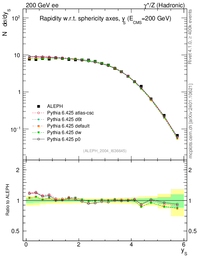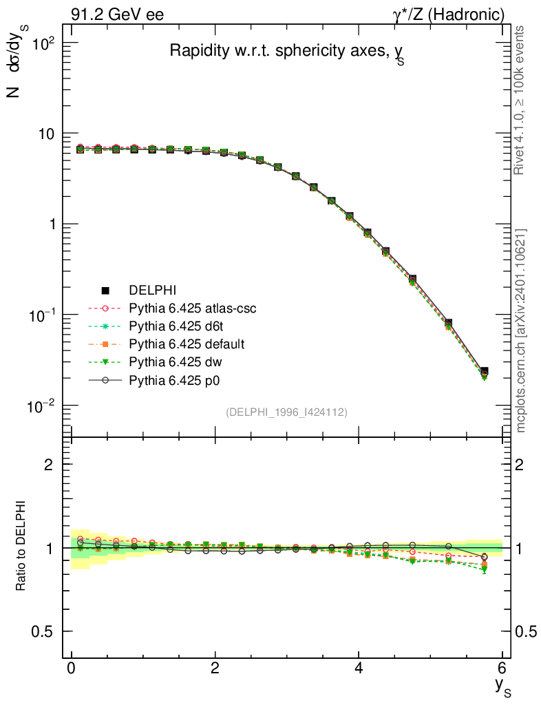 ee : γ*/Z (hadronic) : Charged Particles : Rapidity wrt Sphericity axis