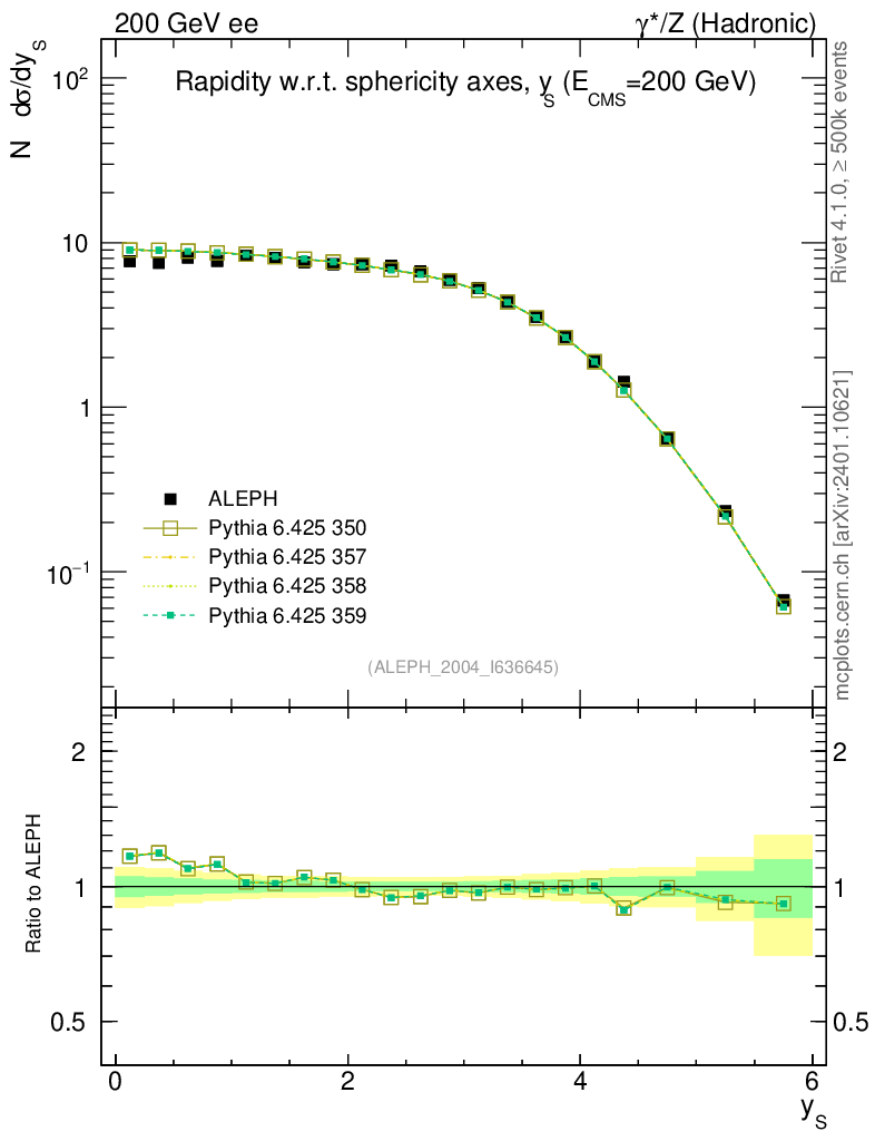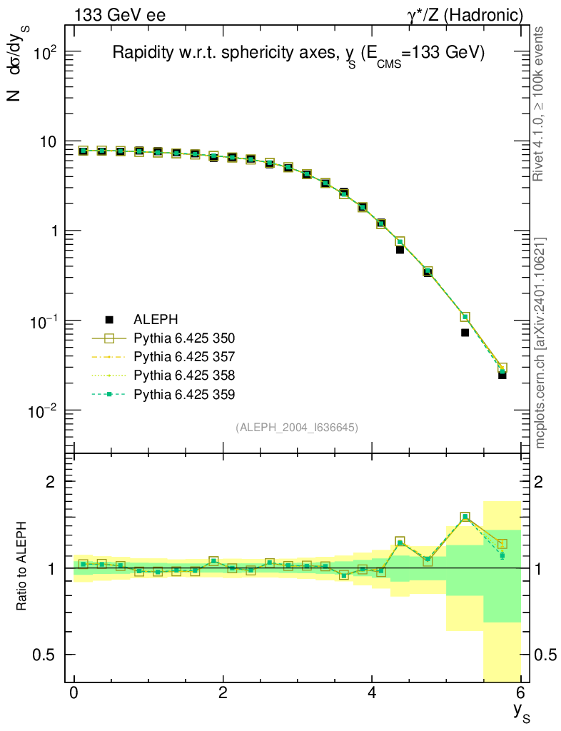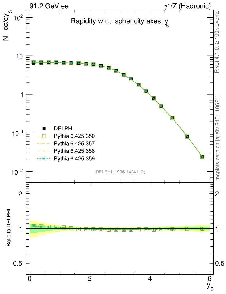 ee : γ*/Z (hadronic) : Charged Particles : Rapidity wrt Sphericity axis