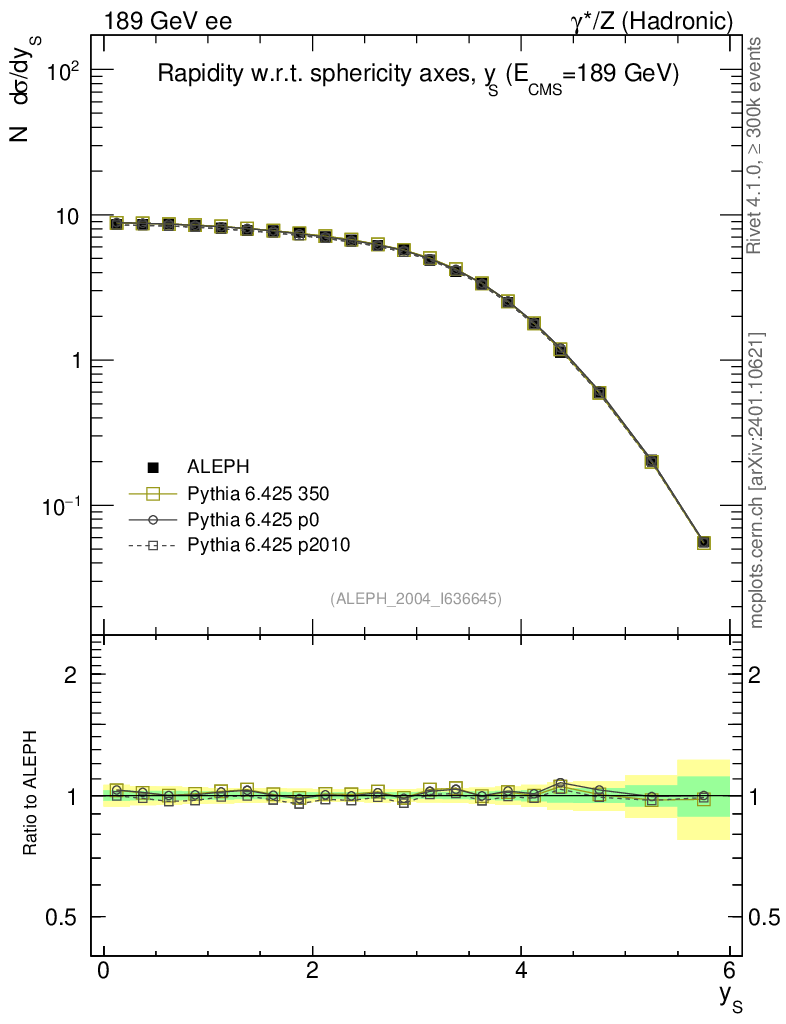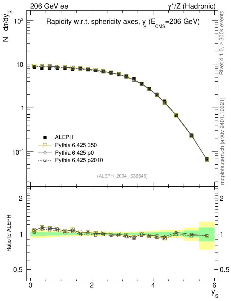 ee : γ*/Z (hadronic) : Charged Particles : Rapidity wrt Sphericity axis