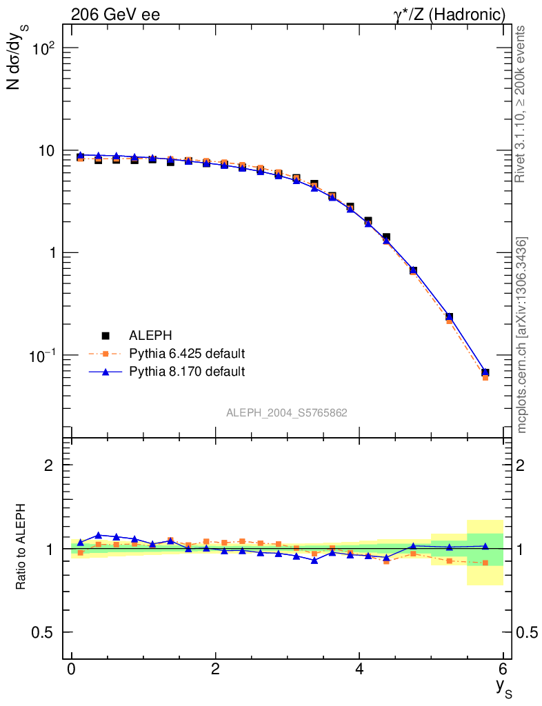 ee : γ*/Z (hadronic) : Charged Particles : Rapidity wrt Sphericity axis