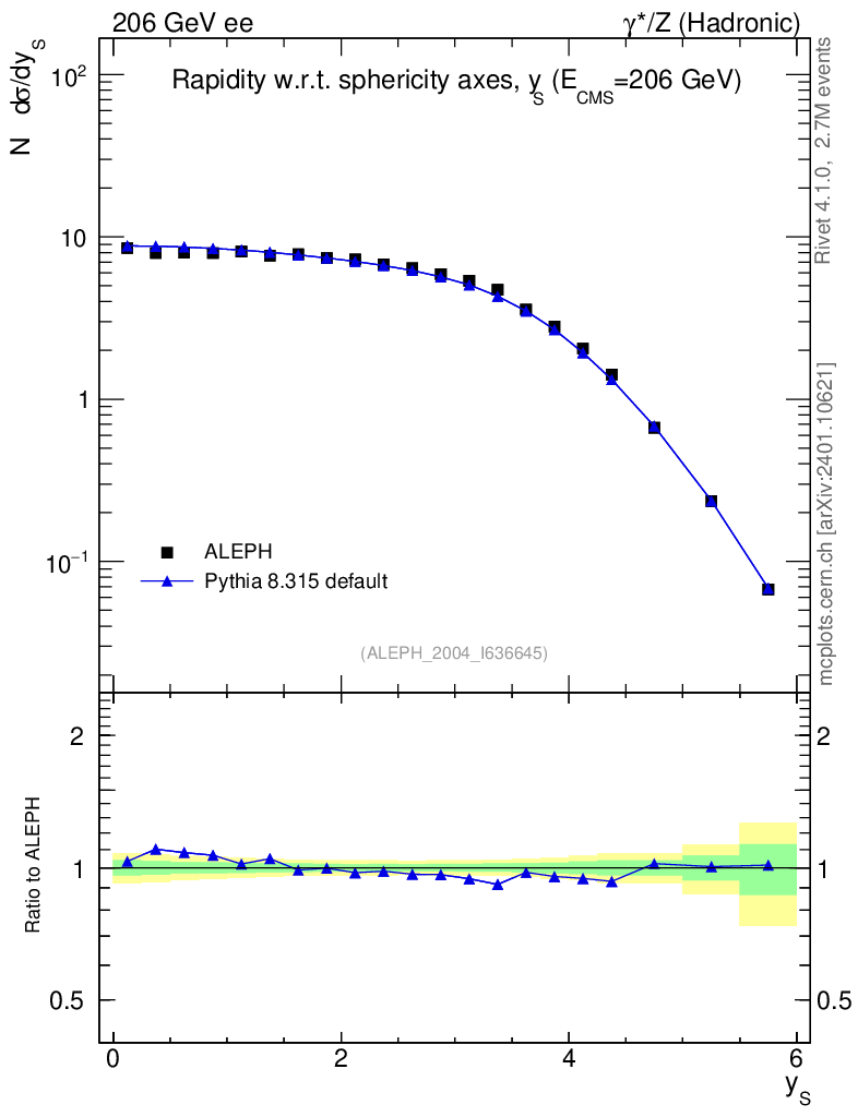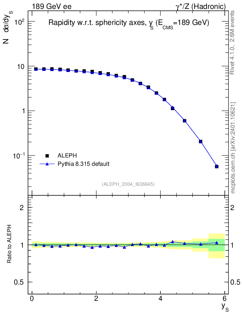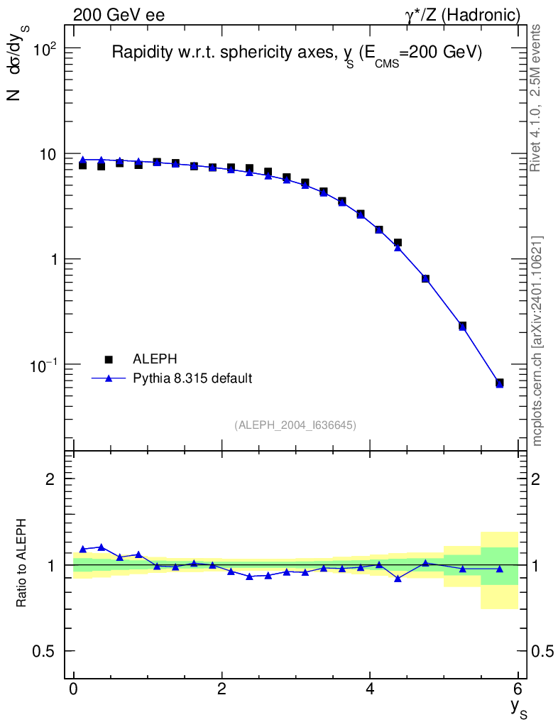 ee : γ*/Z (hadronic) : Charged Particles : Rapidity wrt Sphericity axis