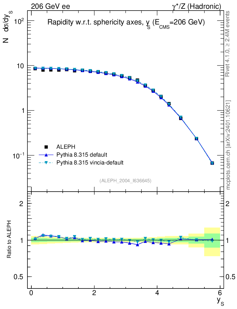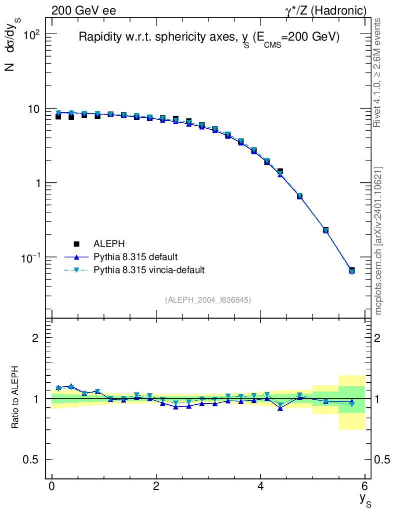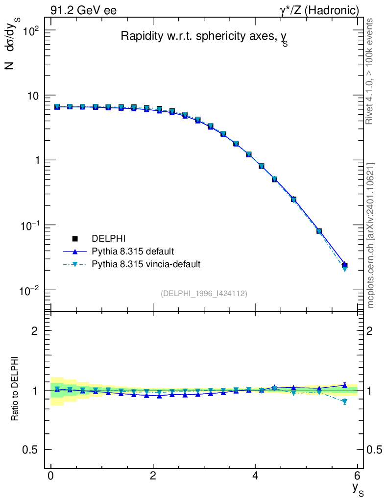ee : γ*/Z (hadronic) : Charged Particles : Rapidity wrt Sphericity axis