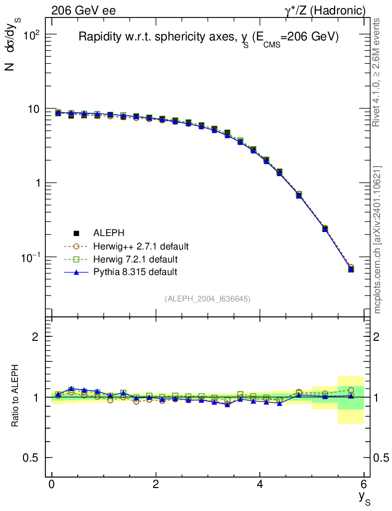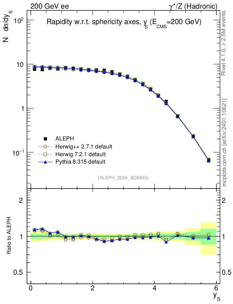 ee : γ*/Z (hadronic) : Charged Particles : Rapidity wrt Sphericity axis