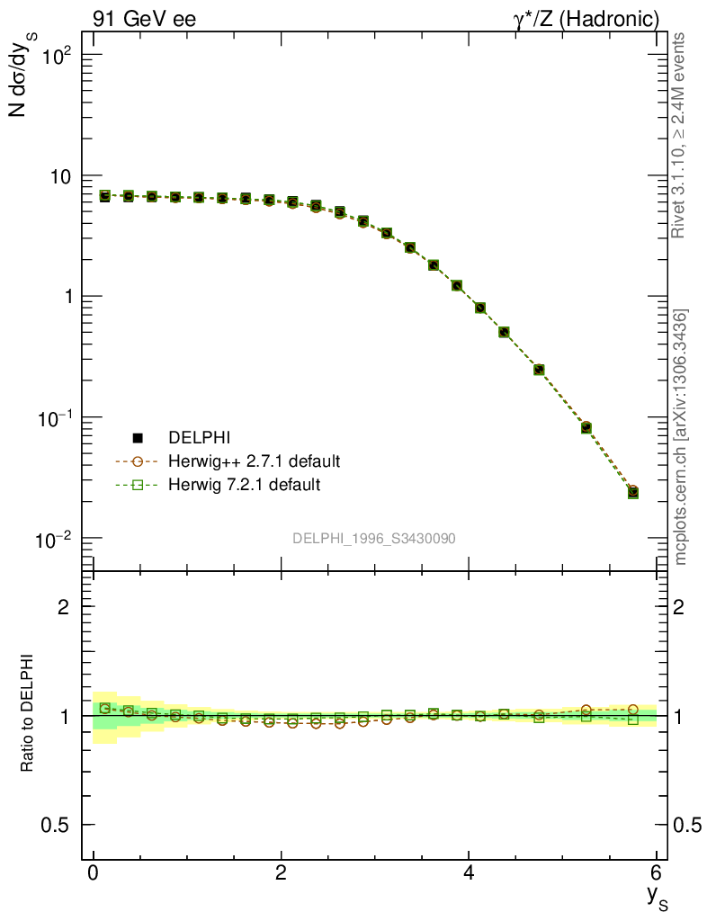 ee : γ*/Z (hadronic) : Charged Particles : Rapidity wrt Sphericity axis