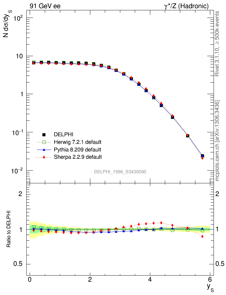 ee : γ*/Z (hadronic) : Charged Particles : Rapidity wrt Sphericity axis